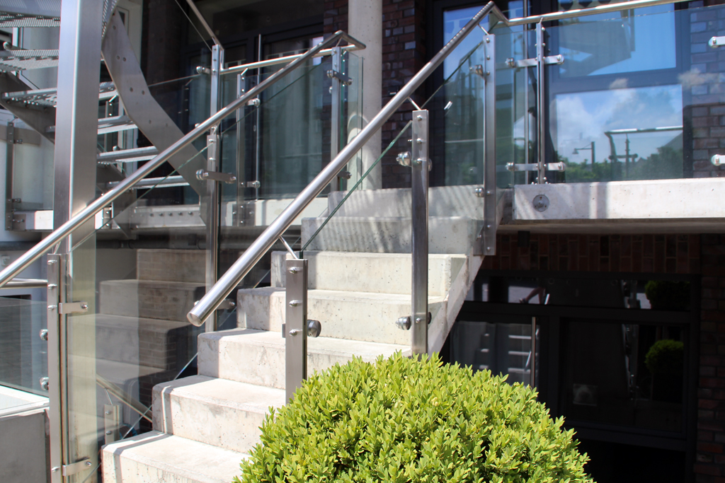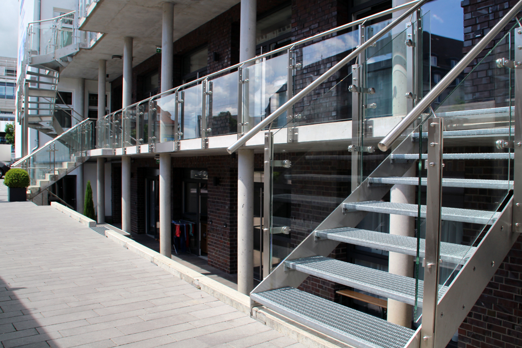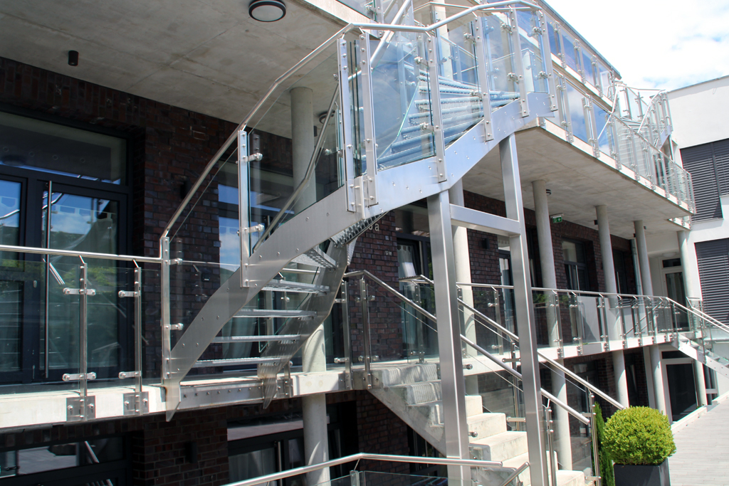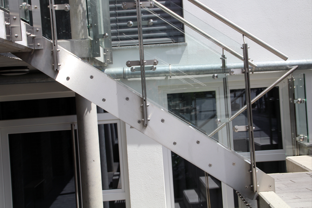 Mit unserer eigenen Bauschlosserei sind wir im Bereich Edelstahl- und Metallverarbeitung für alle Arbeiten im Bauwesen gerüstet. Wir fertigen Verkleidungen, Treppenläufe, Stahlpodeste, Stahlbühnen, Gitterroste, Stahltreppen, Geländer, Hoftore und Zaunanlagen.